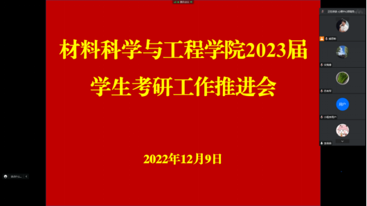 为进一步推进2023届毕业生考研工作,帮助学生解决考前疑惑,12月9日上午,我院通过腾讯会议在线召开了2023届毕业生考研交流会。学院领导、教研室主任、辅导员、毕业班班主任、教师代表、2023届考研学生及部分在校生代表共计150余人参加了会议。会议由团总支副书记熊思彬主持。