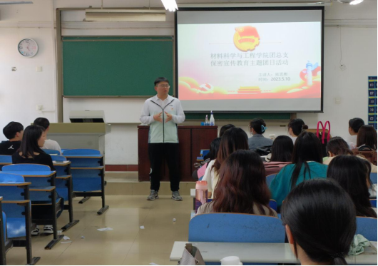 5月10日下午,我院团总支在A14-609举办了“保密宣传教育”主题团日活动会议,21、22级各班学生参加会议,团总支副书记熊思彬出席。